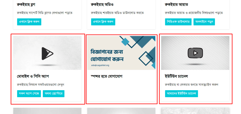 রুকইয়াহ সাপোর্ট বিডির অ্যাপ/ওয়েবসাইট এবং অন্যান্য প্রজেক্টগুলো পরিচালনায় সহায়তার জন্য আমরা ওয়েবসাইটে বিজ্ঞাপন আহ্বান করছি। এই ওয়েবসাইট প্রতিমাসে কয়েক লক্ষবার ভিজিট করা হয়। আর গড় ভিজিটের সময় চার মিনিটের অধিক। তাই আমরা আশাবাদী যে, এখানে বিজ্ঞাপন দিলে আপনার প্রতিষ্ঠানের ভালো প্রচারণা হবে। উপরন্তু আমাদের প্রজেক্টগুলো রান করতে সহায়তার জন্য আখিরাতে প্রতিদান পাবেন।