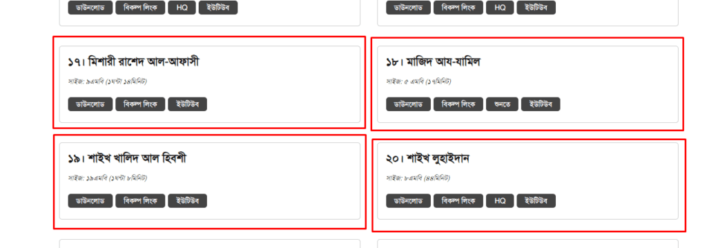 এখানে ডাউনলোড পেজের ৪টি ব্লক দেখা যাচ্ছে